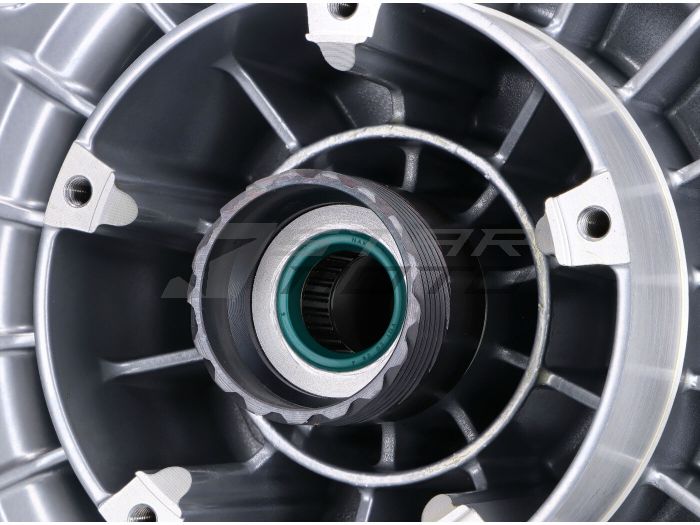 Brake drum front with mesh pattern in silver from GRIMECA for 10 inch rims with big stub d=20mm.
